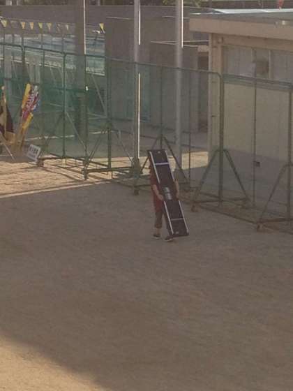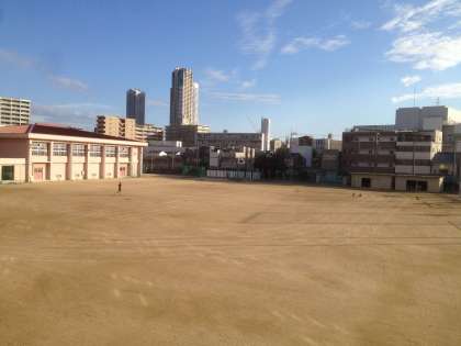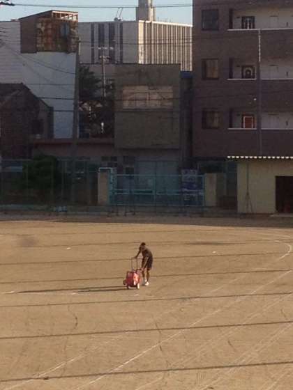 朝の7時10分、教職員の方々は既に、グランドで準備しています。