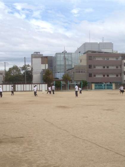 貸出のボールで、サッカーやバレーボールをしている生徒たちの様子です。