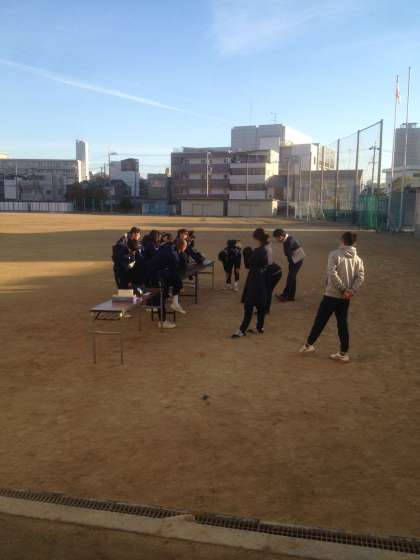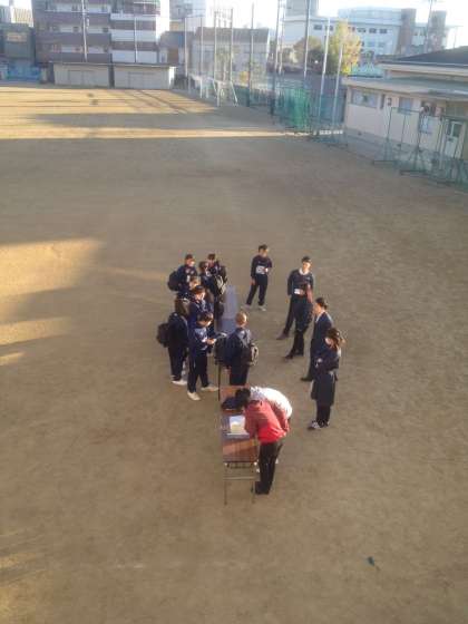 朝の7:20、グランドでは忘れ物チェックです。
