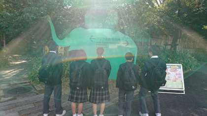 1年生、校外学習。天王寺動物園に来ています。全班、元気に活動しています。