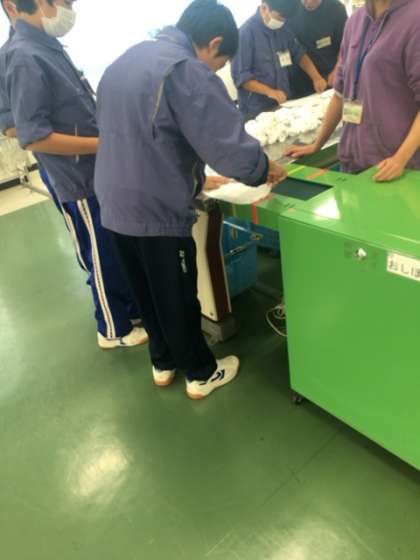 キャリア教育支援センターで特別支援学級の生徒2名がキャリア実習をさせていただきました。緊張しながらもおしぼり加工の仕事を一生懸命頑張りました。