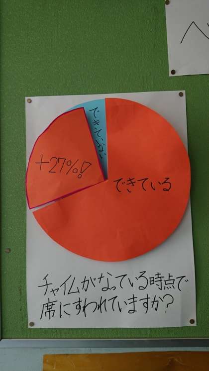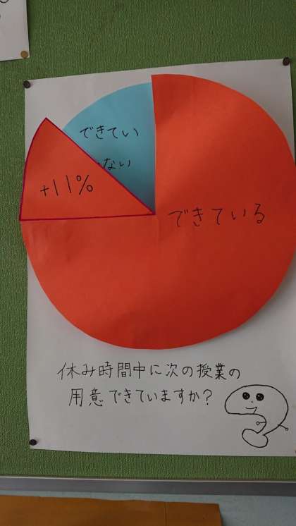 11月7日の学年集会で呼びかけた「ベル着」が、1週間の取り組みの結果11月14日にどれだけ増えたかをグラフにしました。 非常に分かりやすいです。授業にしっかりと取り組むことができる手出てです。意図を理解し、目標を達成しよう!
