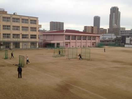 寒さにも負けず、吹奏楽部、バドミントン部、野球部は朝の練習をしています。