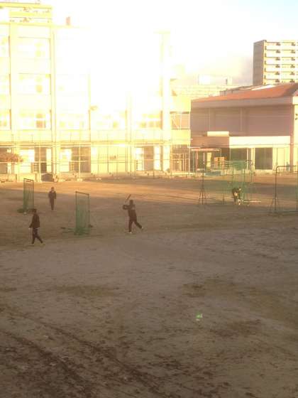気温は低いですが、朝の部活動は、吹奏楽部、バドミントン部、野球部がおこっています。
