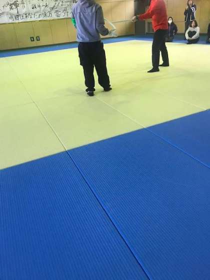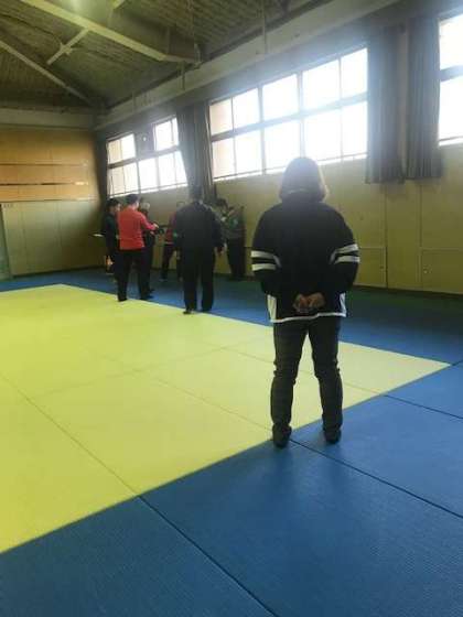 格技室で さすまた を使っての訓練や不審者への対応について訓練をしました。