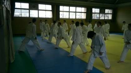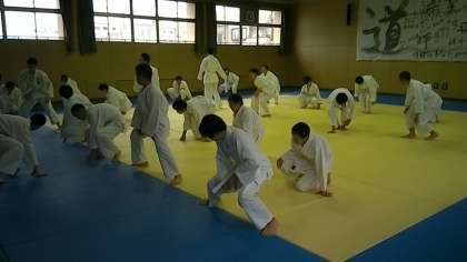 6限、柔道です。まずは、準備体操です。
