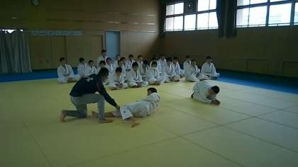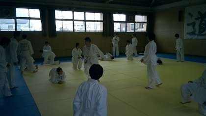 手本のあとは、前回り受け身の練習です。