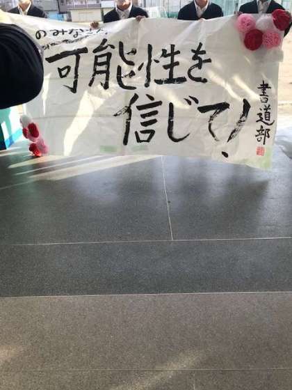 生徒会 学年委員長会 書道部の皆さんか、明日に向けての激励。