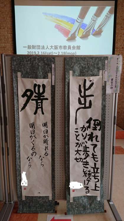 2月16日からの展覧会に書道部の2年生の作品が出展されました。