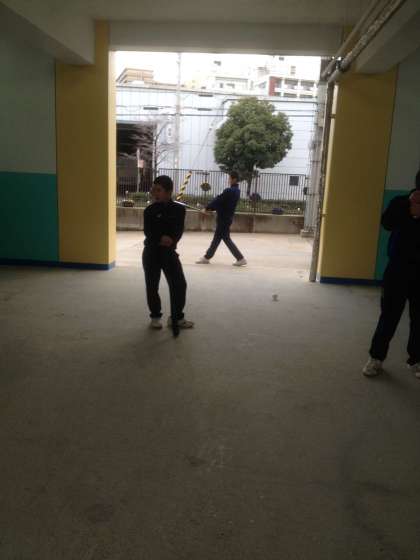 朝の練習は、吹奏楽部、バスケ部、そして野球部です。ピロティで練習もしています。