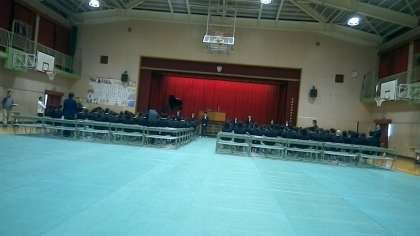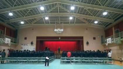 動作練習です。見本の動きを説明して、一斉におこなっています。