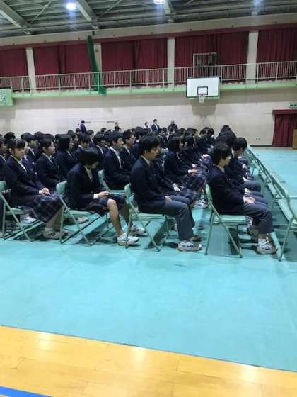 港南中学校1期生で、同窓会の木村会長より、55期生 159名に激励のお言葉をいただきました。苦難を乗り越えて人生を歩んでください。港南中学校卒業生は、様々なところで活躍しています。何かあれば、卒業生に相談してください。皆さんの未来に応援しています。と激励していただきました。ありがとうございました。