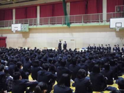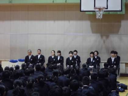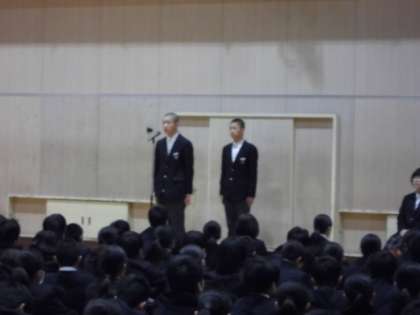 生徒会選挙のようすです。港南中学校をより良くするために演説を行っています。