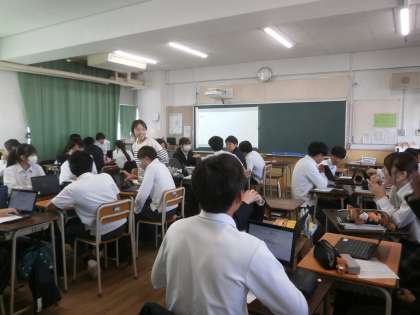 生徒たちは、積極的にスライドを作成し、グループ活動に取り組んでいました。