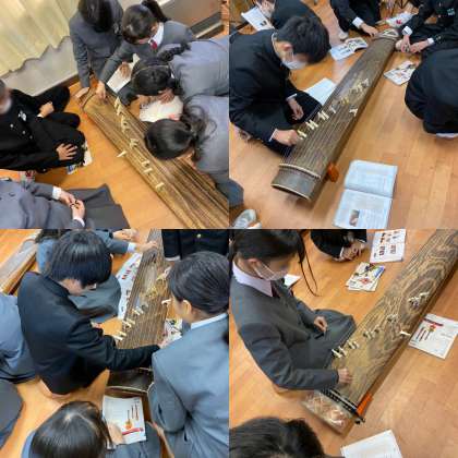 和楽器の授業で「琴」に挑戦しています。