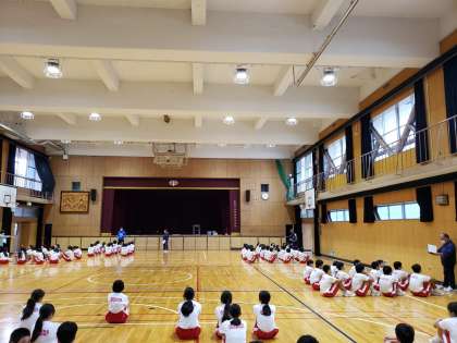 体育大会の学年練習が予定されていましたが、体育館でいろいろな確認を行いました。各種目に出場予定の生徒ごとに集まり、整列順序や動き方の確認を行っていました。
