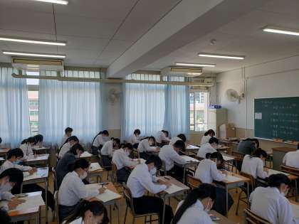 先生たちはこれからしっかり採点します。結果から必ず振り返りをしてほしいと思います。写真は3年生の様子です。