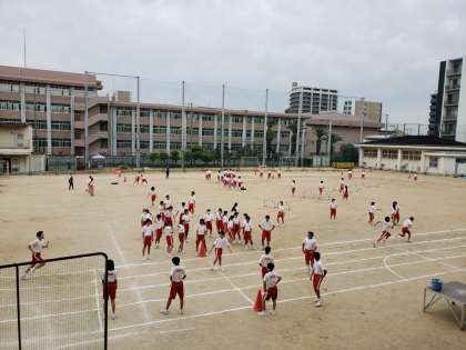 2、3日前の予報では今日は良い天気になるはずだったのですが、時折雨がふりました。その影響で予定していた、午後からの体育大会全体練習は、明日の午後に延期しました。