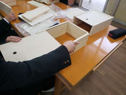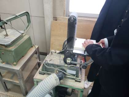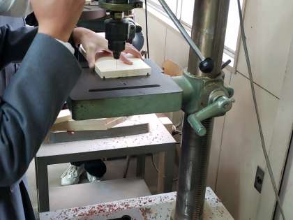 電動工具で木材に穴をあけたり、やすりをかけたり、切断したりして作品を完成させていきます。完成品は・・・何でしょうか?