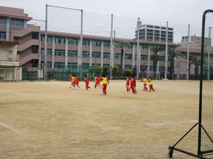 寒空のなかでも2年生女子は体育の時間、グラウンドでサッカーをしていました。ルールを理解して、積極的にボールを蹴ってパスを回してシュートとうまくいけばいいのですが、ボールがなかなか思うように動いてくれない様子が見られました。
