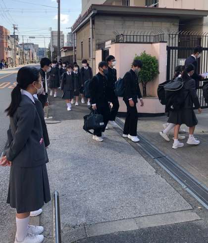 登校する281名の元気な姿が印象的です。