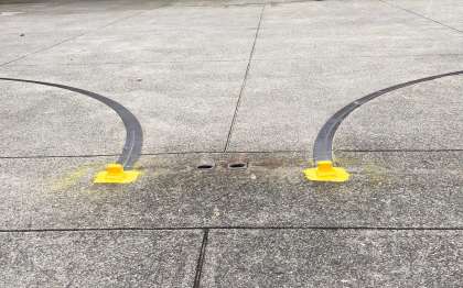 生徒がつまずくことがあった門のこまどめです。 注意喚起の黄色を管理作業員さんに塗ってもらいました。