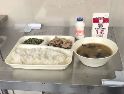 豚肉しょうが焼きとじゃこピーマン、みそ汁です。