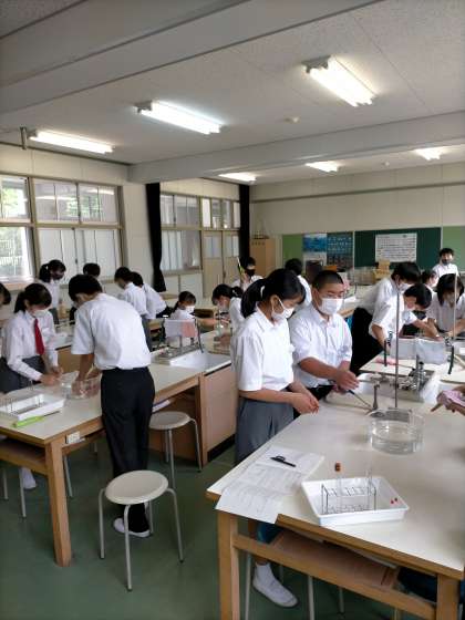 2年生が理科の授業で炭酸水素ナトリウムの熱分解の実験をおこないました。