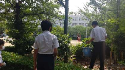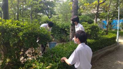 朝早くからたくさんの生徒たちが公園のゴミ拾いをしてくれました。