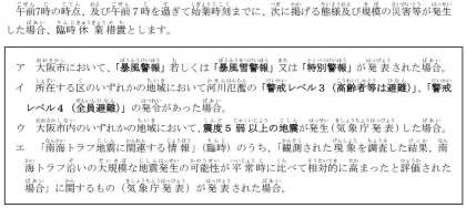 非常変災時の措置について