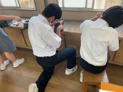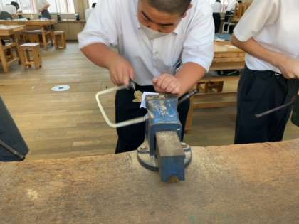 金属板を削り、やすりで磨き、職人さん並みの集中力で取り組んでいました。