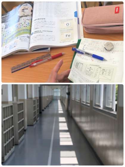 静かな廊下に授業の声だけが流れています。