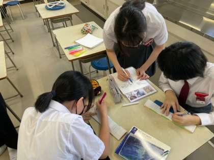 今日は下駄箱に置く予定のクラスの木製看板の下書きを行いました。