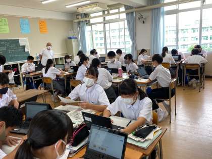 休み時間のうちから調べたり、班で教え合ったり、意欲的に取り組んでいます。