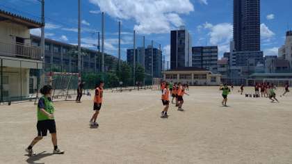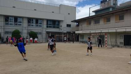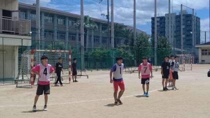 7月17日 市岡東中学校でハンドボール部の練習試合が行われました。