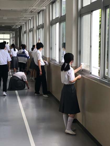 見える汚れを磨きながら心も磨いている市岡東中生です!