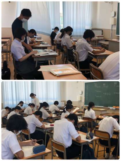 先生方は学校で学習指導、部活動指導です。その他の先生も宿泊行事の下見や定期健診への参加あるいは試合生徒引率で校外にでかけています。