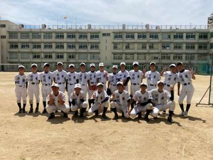 3年生お別れ紅白戦が、青空の中、3年生チーム対1年生チームで行われました。試合は1年生チームが勝ちました。