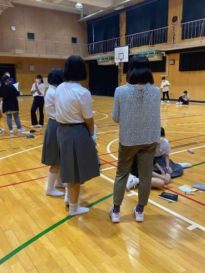 よりよいものになるように、衣装係が役者ひとりひとりにアイディアを提案しています。