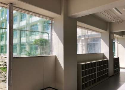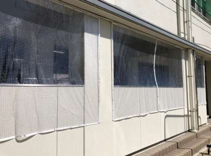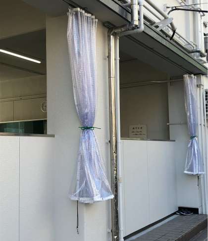 以前より管理作業員さん作業中であった「雨よけカーテン」