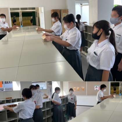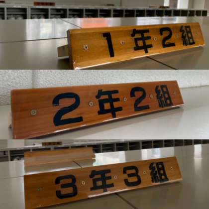 夏休み前に取り組んでいた下駄箱のクラス看板が仕上がりましたので、設置をしました。