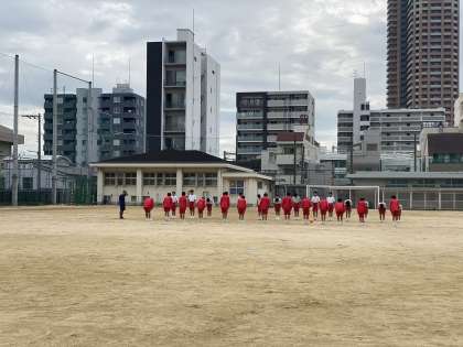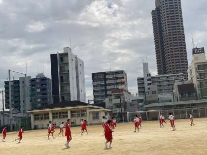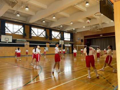男子体育はサッカー、女子体育はバレーボールをしています。