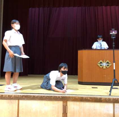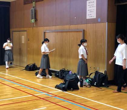 24日の生徒会役員選挙に向け、立会演説練習中です。