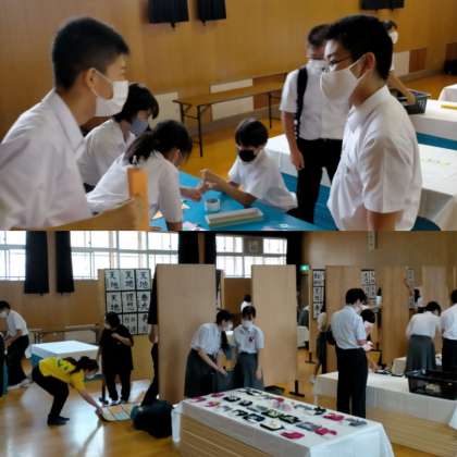 明日はいよいよ文化発表会当日です。展示の部は格技室で行うため、係の生徒が一生懸命準備をしてくれています!