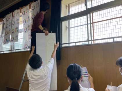 格技室で展示準備を行いました。明日の鑑賞会で一人ひとりの取り組みを感じて考え方を深めていきます。