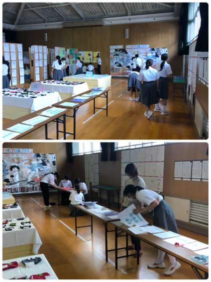 3年生がクラス単位で見学中です。熱心に一言感想を記入している様子が印象的です。
