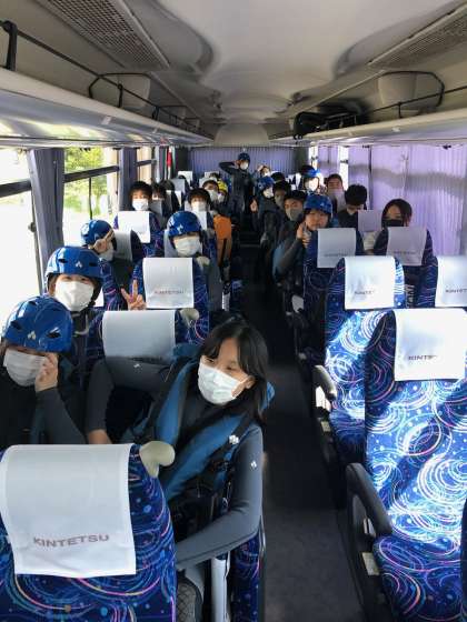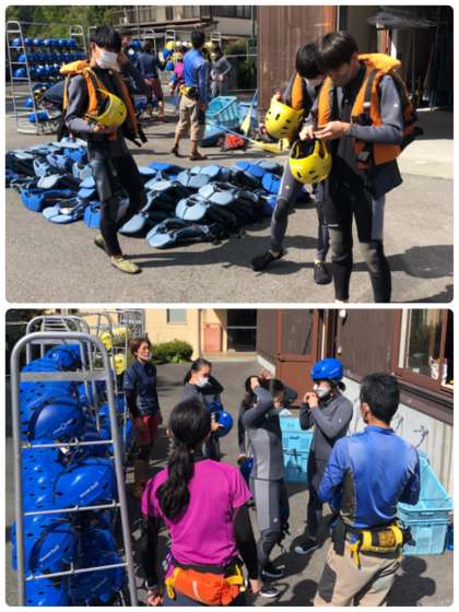 ウェットスーツにヘルメット、準備できたら上流へ出発。