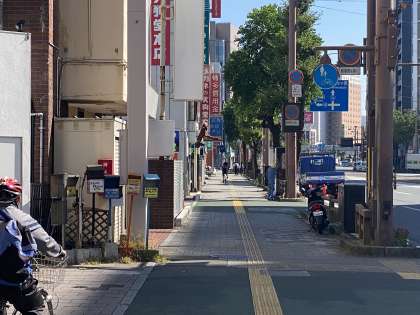 歩道でも端に寄ってマナー良く移動しています。