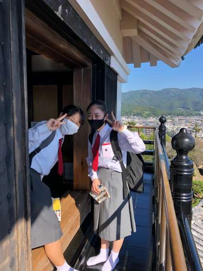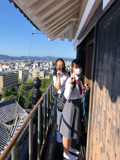 天守閣へ!