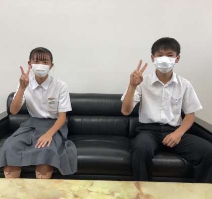 大阪市秋季大会報告(男子優勝・女子準優勝)と応援のお礼に校長室を訪ねてくれたハンドボール部男女キャプテンです!